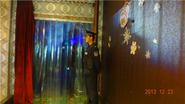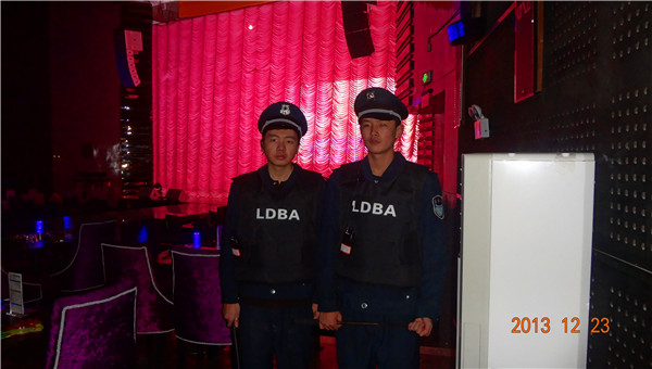 上图为保安人员在演艺厅负责保安工作。